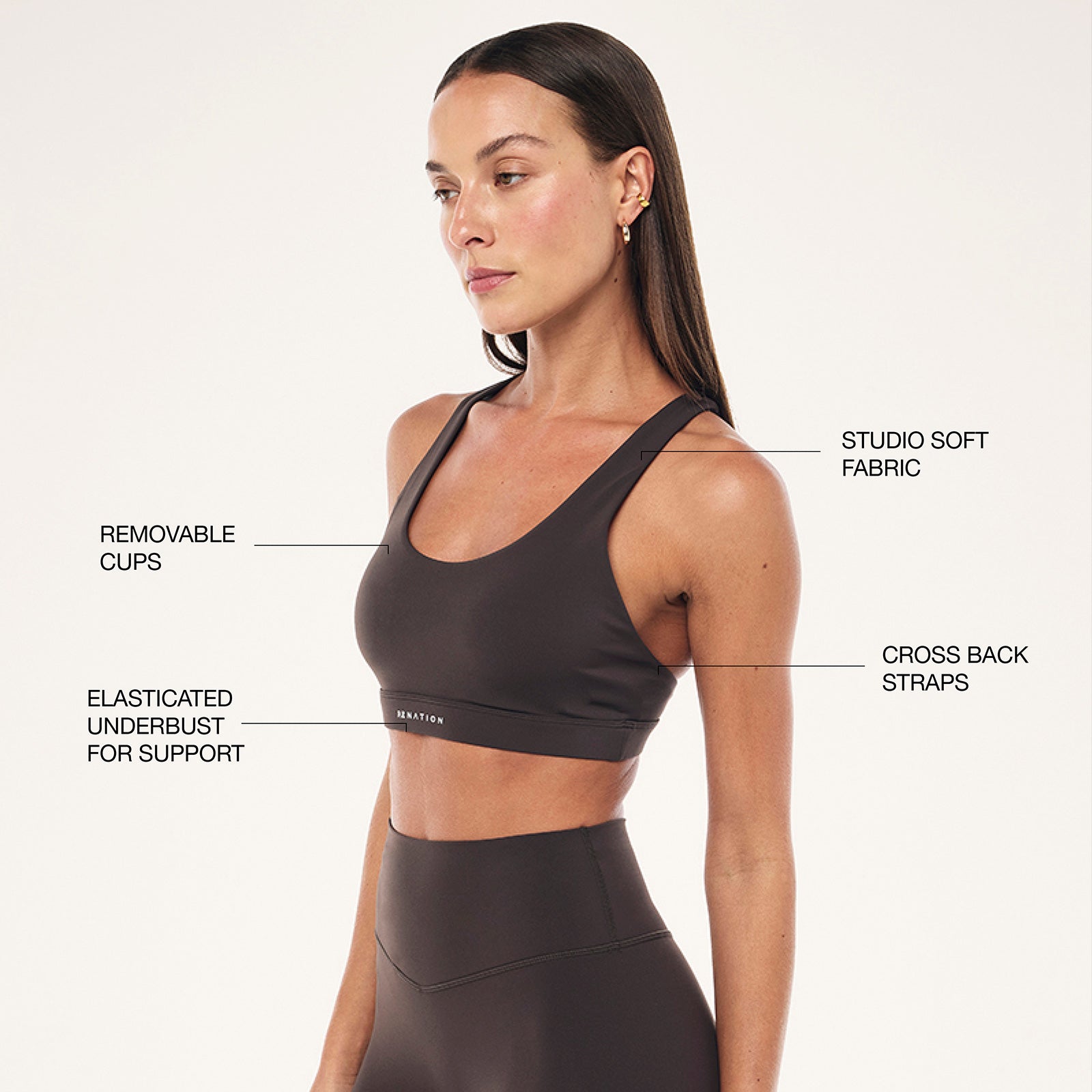 Enhanced elastic underbust to create a secure fit for strength sessions and everyday movement